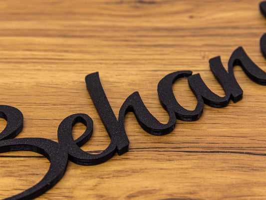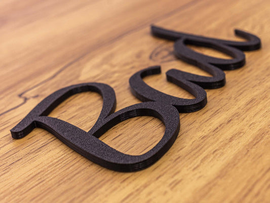 Wir fertigen all unsere Produkte mittels des 3D Druckverfahrens an. Jedes unserer Produkte ist einzigartig, weshalb es während der Produktion zu kleinen Unregelmäßigkeiten in der Oberfläche kommen kann. Jedes Schild wird nach Fertigung geprüft und falls notwendig von Hand nachgearbeitet.